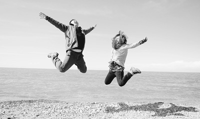 國慶長假,兩名游客在青海湖畔縱身躍起。新華社記者 吳光于攝