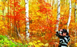 10月7日,游客正在京郊懷柔區(qū)喇叭溝門滿族鄉(xiāng)原始森林公園白樺林中觀賞秋色。卜向東攝
