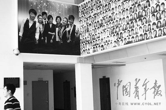 四川音樂學院通俗音樂學院的宣傳墻,上面有就讀于該院的選秀明星。記者 王鑫昕攝