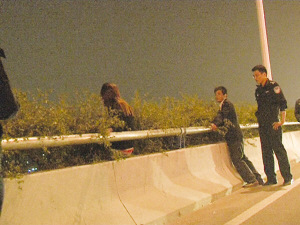 輕生女在高架橋上不聽勸說。(圖片來源:揚(yáng)子晚報(bào))