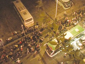 當(dāng)晚5點(diǎn)40分,交警三大隊(duì)的李教導(dǎo)員在巡查晚高峰車流狀況時(shí)發(fā)現(xiàn),應(yīng)天大街高架中華門長途汽車站路段的高架橋欄桿外側(cè),一名年齡30歲左右的長發(fā)女子坐在那里,看上去是想不開要跳橋,離女子不遠(yuǎn)的身后,一名男子跪在橋面上,操著外地口音請(qǐng)求女子下來,但是女子并不理睬,此時(shí)情況十分危急,女子懸在橋欄外,身下不但是堅(jiān)硬的路面,而且車來車往。李教導(dǎo)員于是上前勸說,并立即通知110前來處理,很快110及中華門派出所民警都到場。“有什么想不開的,下來慢慢說,坐在橋欄外面多危險(xiǎn)啊,稍有閃失就粉身碎骨,不值得啊。”在現(xiàn)場的民警勸她,但女子一言不發(fā)。這時(shí),橋下汽車站附近聚集了不少群眾,大家紛紛仰望橋面上的動(dòng)靜。一輛消防車開到橋下,在勸說無果的情況下,消防員迅速在女子的正下方鋪設(shè)了一張鼓鼓的氣墊,準(zhǔn)備采取強(qiáng)制營救。