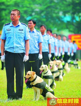 “這些萬中挑一的警犬全都身手不凡,其中35條是功勛犬,它們將在廣州亞運期間負責核心場館的搜爆、搜毒等安保工作。”據介紹,廣州亞運安保警犬技術團隊除廣州市100名帶犬警察及攜帶的100條工作犬外,還有來自23個。▍^、市)的公安機關以及民航、邊防系統的210名帶犬警察及其攜帶的210條工作犬。他們當中,有曾經參加過2008年北京奧運會、2009年北京國慶防爆安檢工作中的帶犬警察和工作犬。