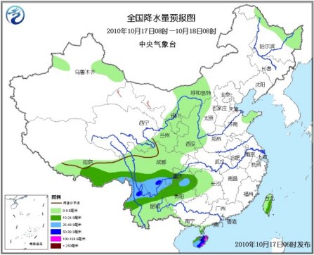 17日08時至18日08時,新疆東北部和天山西部、西藏中東部、青海東南部、川西高原大部、內蒙古中部、黑龍江北部等地的部分地區有小雨(雪)或雨夾雪,其中,西藏東南部的局部地區有大雨;西北地區東部、山西西部、山東半島、湖南西部、湖北西南部、四川大部、重慶西部和南部、貴州、云南、廣西南部沿海、廣東雷州半島、海南、臺灣等地有小到中雨或陣雨,其中,海南大部有大到暴雨,局地有大暴雨,另外,云南北部、四川南部、貴州東北部等地的部分地區有大雨,局地有暴雨;上述地區局部并伴有短時雷雨大風等強對流天氣。內蒙古西部、東北北部等地有4~6級風。受冷空氣和“鲇魚”的共同影響,臺灣以南海域的風力將由7~9級加大到12~14級、陣風可達15~16級;臺灣海峽、臺灣以東洋面、南海東北部海域將有7~9級大風,陣風可達10~12級。另外,渤海、黃海北部海域將有5~6級偏東風;東海大部海域將有5~7級東北風;南海西北部海域將有6~7級東北風;南海中部和南部海域將有5~6級偏南風轉西北風。