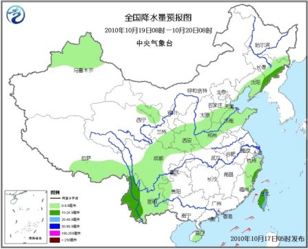 17~20日,冷空氣自西向東影響新疆、西北地區東部、華北等地,氣溫下降3~6℃,局部地區下降8~10℃,主要是給華北地區帶來一次降水天氣。