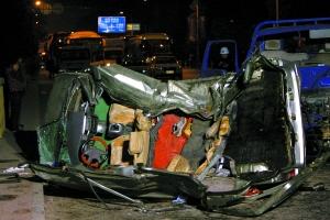 面包車車頂被撕開。昨日下午,京良路多車連撞4死6傷。記者 吳江 攝