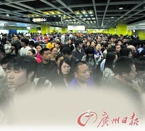 昨日,廣佛兩地很多沒有飲上“頭啖湯”的市民擠往廣佛線,導致該線全天客流爆滿。西朗站因為客流量太大,從昨日早上到晚上一直實行客流控制。
