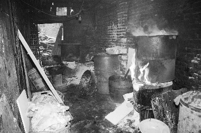 屋門口架著火爐,火上正用半截廢舊油桶煮著生肉。而與火爐僅一門板之隔,外面就堆放著許多用來燒火的木柴和紙箱,很容易引發(fā)火災(zāi)。檢查中,執(zhí)法人員發(fā)現(xiàn)該窩點竟然用涂抹瀝青的方式來“拔毛”。經(jīng)過執(zhí)法人員的仔細檢查,在簡易房旁邊的一間黑屋子內(nèi)找出了躲藏在內(nèi)的老板,而這位老板現(xiàn)場拿不出任何的合法證照。“這些加工好的熟食都銷售到哪里去?”“綠色市場。”“不可能,綠色市場就不賣熟食品。”工商人員當即拆穿了加工者的謊言。最后,工商執(zhí)法人員在這處熟食加工黑窩點查獲待加工的生肉500余斤、已加工好的熟食300多斤。(袁文波 杜進紅)