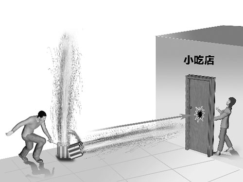 剛才還躲在一邊捂著耳朵的張先生發現,地上的禮花不知啥時候歪倒了,正沖著一樓老詹的店鋪狂射。煙霧中,老詹扶著滿臉是血的老婆周女士往外跑。