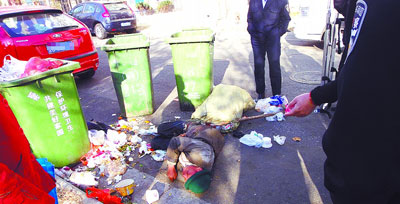 拾荒老漢暈倒在垃圾桶旁 黃狗蹲守保護主人(圖)