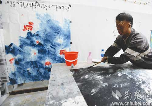 在京城書畫界小有名氣的無手畫家姚宗澤,目前隱居在武漢市蔡甸區(qū)馬家渡鄉(xiāng)劉家大灣,搞起了養(yǎng)雞創(chuàng)業(yè)。連日來,記者兩次來到姚宗澤的養(yǎng)雞場,近距離接觸這位身殘志堅,從小就頗具傳奇色彩的無手畫家。