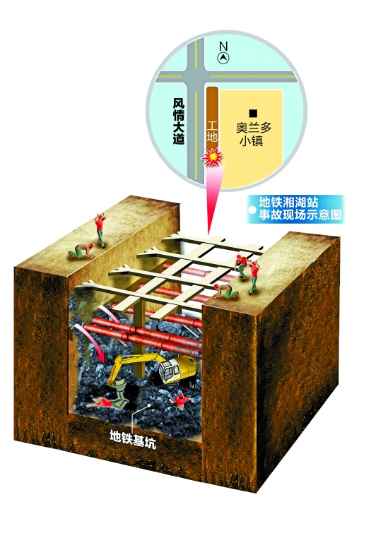 據(jù)現(xiàn)場施工的李師傅回憶,事發(fā)時正值午休時間,工人們都在休息。兩名工程機(jī)械司機(jī)也趁著空隙對機(jī)器進(jìn)行維修。“就在兩個人檢修機(jī)器的過程中,基坑內(nèi)土體突然滑落,當(dāng)場就把兩個人埋了。”