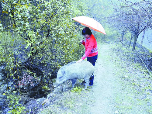 昨天上午9點,浦江王先生向《浙中城事》熱線0579-89111111報料:我們村有人養了一頭野豬當寵物,厲害吧?這頭野豬一點也不兇,特別通人性,很好玩,我們這里的鄰居都特別喜歡它,時不時去和它玩玩。