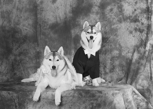 不久前,黃女士請攝影師為它倆拍婚紗照,哈士奇是好動的狗,一下午黃女士和攝影師累得滿身是汗,總算拍了十幾張滿意的相片。黃女士拿著照片向記者介紹:坐得端端正正的,是“婚照標準像”;兩條狗狗一起望著右前方的,是在“憧憬未來”;“新郎”坐得高高的,“新郎”溫馴地趴在地上,那是最般配了……