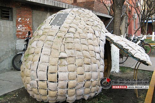 今年7月,面臨畢業(yè),戴海飛將想法告訴給了專業(yè)老師湯斗斗。湯老師很支持:一個(gè)建筑學(xué)專業(yè)的應(yīng)屆生,靠自己動(dòng)手解決住房問題,想法不錯(cuò)。于是,他從工作室調(diào)配了幾名學(xué)生,幫戴海飛一起造蛋。至于這顆蛋怎樣造,會(huì)造成什么樣子,湯老師沒有介入,當(dāng)時(shí),他去了西藏。