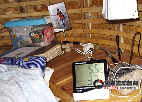 12月3日下午,戴海飛的“蛋屋”里顯示溫度為5.5℃,濕度為37%。