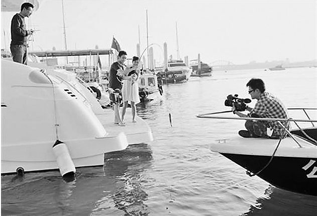 前日(5日)下午,李小龍摟著新娘小葉,在廈門五緣灣海邊垂釣。一會兒,李小龍站起來飛快地收線,在小葉的歡呼聲中,釣起一尾活蹦亂跳的鱸魚。在夕陽的余輝中,這對小夫妻像孩童般在甲板上跳。二人腳下是他倆租來拍攝婚紗電影的道具——市值上千萬元的游艇。這樣的“道具”,他們一共租了五艘。“穿幫啦!這是淡水魚!劇務(wù)搞什么名堂!”在小兩口的歡呼聲中,一個(gè)戴著漁夫帽的腦袋從對面的攝像機(jī)后探了出來,對著邊上的工作人員沉下臉來—— 每艘游艇一小時(shí)的租金近一萬元。因這個(gè)NG鏡頭浪費(fèi)了一段時(shí)間,意味著得多“燒”一疊的錢。