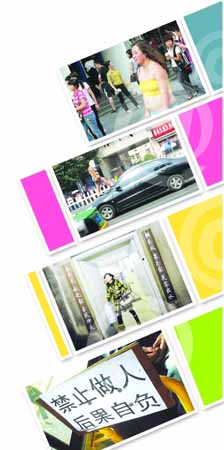 圖1:猛女出街照,形象震撼,網(wǎng)友認(rèn)為,“世間若真有小月月,就該這般模樣”。 圖2:西安最牛收費(fèi)員。圖3:本報(bào)曾報(bào)過(guò)的南大女生宿舍樓玉鳳芙蓉對(duì)聯(lián)也是候選圖片之一。 圖4:公交車?yán)兹酥甘荆白恕弊儭白鋈恕薄?/FONT>
