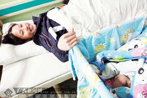 產婦與兒子在醫(yī)院病房里。(資料圖片/來源:廣西新聞網)