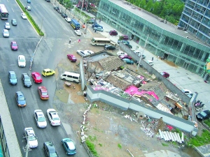 6月17日,曙光西路,由于“釘子戶”占道,馬路不得不繞彎。本報記者 王嘉寧 攝