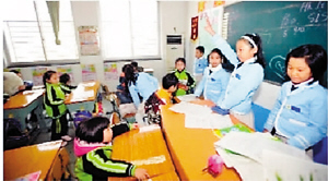 “少兒政府”的副市長和兩位局長在教室里檢查紀律