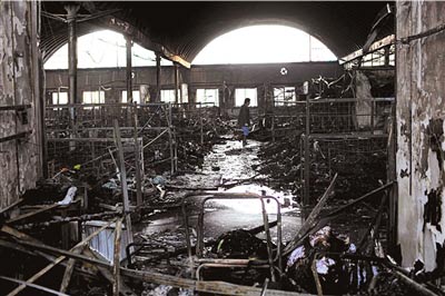 菜市場內(nèi)被燒得一片狼藉。本報記者朱嘉磊攝