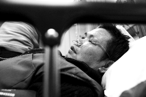 昨日下午4時,王守浩躺在協和醫院的搶救室內,鼻孔插著氧氣管,手上打著吊瓶。
