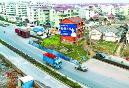 這幢紅色磚瓦三層建筑突兀地聳立在路肩,周圍還圍著一圈菜地,一條四車道寬的馬路到這一段生生變成了二車道。由于沒有路燈,晚上經(jīng)過這里的車輛都會減慢速度,異常小心。