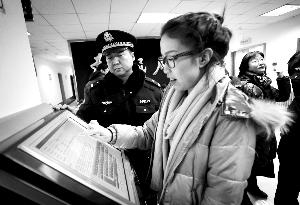 12月23日,西城分局內(nèi),一位女事主通過(guò)立案公開(kāi)系統(tǒng),查詢案件進(jìn)展情況。本報(bào)記者 趙亢 攝