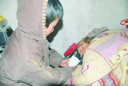 何福源的母親雖經多方救治撿回了一條命,但完全喪失了生活自理能力。她不知道東西南北,不認識左鄰右舍。家里的一日三餐,飯由爺爺來做,小福源負責給母親送飯,給父親喂飯。
