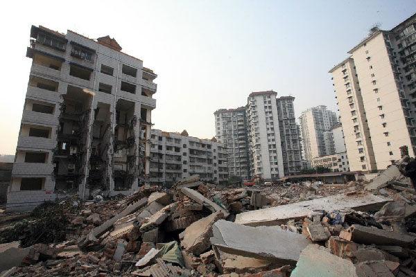 昨日,亞川公司老板何興貴介紹稱,這個項目屬于綿陽市政府批準的地震災后重建項目。他們拆掉的房屋都是危房。