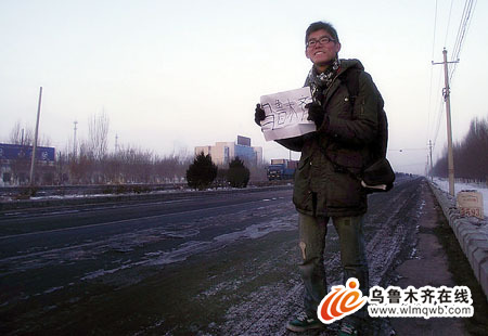 2011年1月6日20時30分,23歲的烏魯木齊男孩胡蓓蕾以沿途招手搭順風(fēng)車的方式從南京回到了家。一路上奔馳、奧迪、拖拉機、大卡車、越野車……他換乘了25輛車,卻沒花一分錢路費。
