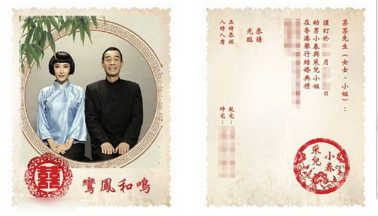 資料圖片:陳小春和應采兒的結婚請柬 注:文圖無關