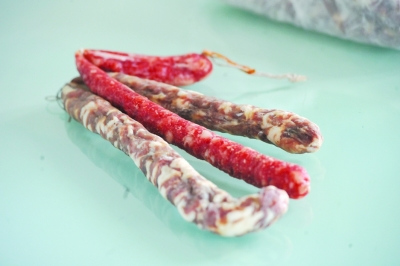 淀粉香腸 中間特別紅艷的就是淀粉香腸。張?bào)?攝