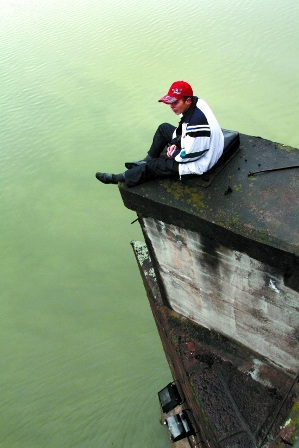 本報攝影記者葛躍進當時正巧路過,“剛開始他站在橋邊,我以為他在看江景,沒想到他一下子就爬到橋墩上,坐在那里哭了起來。”
