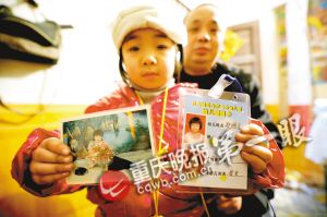 婷婷拿著貼有媽媽照片的幼兒園接送卡,十分想念去世的好媽媽。 記者 冉文 攝