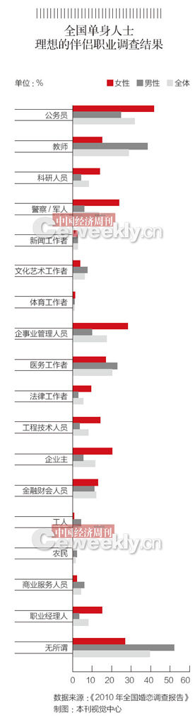 “去年,我們提出了一個理論叫做擇偶的超價理論,即每個人都希望找到比自己實際條件更高的理想的對象;今年我們又提出了擇偶錯位的概念,即人們對另一半的期望是合理的,但它是不對稱的,比如男性的擇偶期望和女性的擇偶期望不吻合,整個的單身人群的擇偶期望跟整個社會情況不吻合。”田范江表示,據(jù)《2010年全國婚戀調(diào)查報告》顯示,24%的女性認(rèn)為自己黃金的結(jié)婚年齡是28歲~30歲,但只有7.2%的男性認(rèn)同這一觀點。這意味著百分之十幾的女性可能成為“剩女”。另外,在擇偶標(biāo)準(zhǔn)里,70%以上的女性認(rèn)為對方要有房子,50%左右的男性也要求對方有房子,可在大城市里,這樣的要求和現(xiàn)實不吻合。