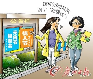 西方情人節(jié)才走,號(hào)稱中國(guó)情人節(jié)的“元宵”又接踵而至,一個(gè)星期連續(xù)經(jīng)歷兩個(gè)“情人節(jié)”的洗禮,淡定的寂寞的心又變得躁動(dòng)——“剩斗士”們想找一個(gè)人相伴而過(guò)。或許正是看中雙節(jié)過(guò)后單身男女內(nèi)心的不安,形形色色的相睇活動(dòng)又“活躍”起來(lái)。不過(guò)對(duì)于有過(guò)三次參加相睇活動(dòng)經(jīng)歷的網(wǎng)友“武松打虎”而言,靠相睇尋真愛(ài)是“浮云”,他甚至直言有的相睇活動(dòng)只是“吃飯會(huì)”,還不如上網(wǎng)發(fā)帖征女友來(lái)得“快狠準(zhǔn)”……
