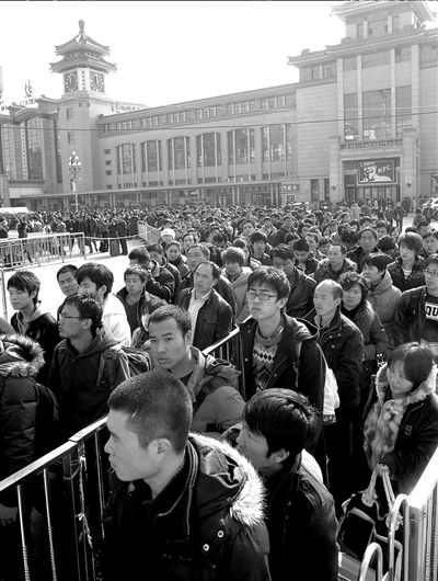 隨著元宵節的過去,春節正式結束,很多農民工開始返京。此外,下周一是本市多所高校開學的日子,北大、清華等高校都將到校報到的日子定在本周六到周日。因此,本市鐵路迎來新一輪返程高峰,客流以學生流和農民工流為主。