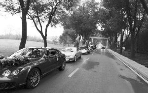 “主要是看車,實在是太騷包了。邁凱輪SLR,LP640,LP560,599GTB,R8,911T,GTS,F430,430SC,C63 AMG,TARGA4……空前絕后,2009年武漢那場超跑婚禮簡直是小兒科。”去年2月25日,在無錫知名的“東林書院”論壇上,網友“wx_zc”上傳了一組一個月前在無錫舉辦的一場婚禮照片,從上傳的照片看,婚車車隊的豪華程度令人咂舌。