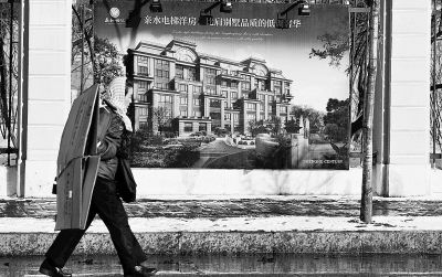 2月19日,一名行人從一樓盤宣傳廣告板前走過。2月18日,哈爾濱市政府正式下發《關于進一步做好哈爾濱市房地產市場調控工作有關問題的通知》,《通知》規定,擁有兩套住房的哈爾濱市家庭將不能再買房。新華社記者 王建威 攝