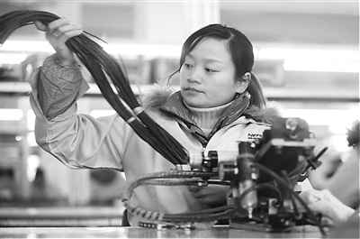 3月2日,湖北納偉仕投資有限公司的工人周雅平在生產線上工作。記者 程敏 攝