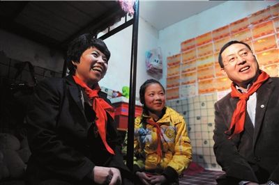 下午,鄧亞萍和謝軍、葉喬波分頭前往兩名外來(lái)務(wù)工子女的家中參觀。在5年級(jí)學(xué)生楊倩的家中,十幾平米的房間內(nèi),放了兩張床,住著一家四口,但滿墻貼的是楊倩5年來(lái)獲得的39個(gè)獎(jiǎng)狀,“每一次到這兒來(lái),看到這些人、這些事,我都非常受感動(dòng)、受啟發(fā),每一次都是對(duì)我心靈的震撼。這么好的孩子,需要我們?nèi)椭齻!编噥喥颊f(shuō)。