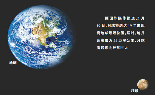 “超級(jí)月球”一說(shuō)源自英國(guó)《每日郵報(bào)》3月8日的一篇報(bào)道,稱(chēng)今年3月19日,月球?qū)⒌竭_(dá)19年來(lái)距離地球最近位置,屆時(shí)它與地球的距離將僅有35萬(wàn)多公里,看起來(lái)會(huì)異常巨大。