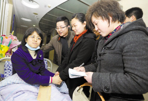 昨天下午3點多,當初渝大新聞學院廣電2班的很多同學,趕到醫院看望江麗華,并積極地聯系紅十字會,希望為其贏得生存的希望。在大家的勸說下,江麗華也同意與妹妹做骨髓配型。