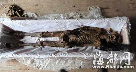 核心提示:發現一具數百年前干尸的消息,一下打破南平浦城石陂鎮一個叫連墩村的小山村的寧靜,甚至有人驅車上百公里來看熱鬧。可考古專家趕到現場時,卻連聲感嘆,太可惜了。因為這里被2次挖開,里面的陪葬品幾乎蕩然無存。