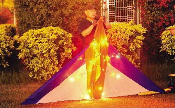 這位先生姓馬,剛剛那圈紅燈正是他放上天的夜光風箏發出的