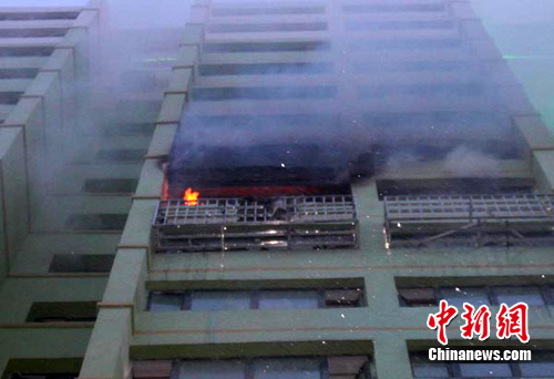 圖為新疆和田市區內一商住樓發生火災,當地消防人員將樓內500余名群眾疏散,未造成人員傷亡。
