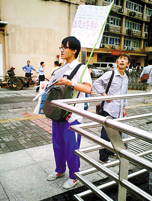穿著校服,舉著橫幅,利用放學(xué)時間在地鐵口收集市民意見,對地鐵一號線車站翻新工程提出批評———近日,廣州一名中學(xué)生在新浪微博上一“舉”走紅。羊城晚報記者經(jīng)過多方尋找,發(fā)現(xiàn)這名“橫幅哥”就是本版《地下鐵接龍》欄目第260期的“主持人”、來自廣州某中學(xué)的陳同學(xué)。