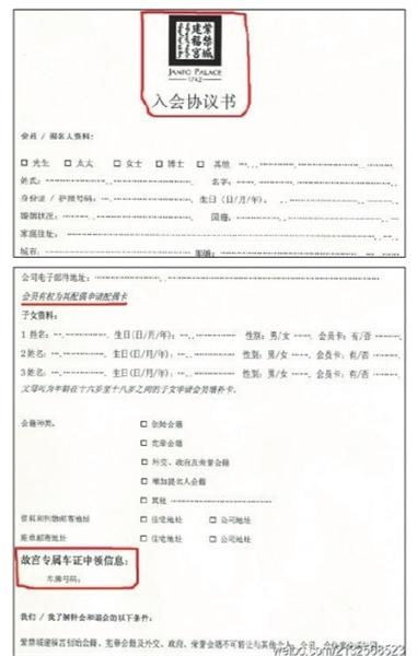 網友“@不要臉愛面子”貼出的故宮建福宮發展會員的協議書(部分)。 圖/新浪微博