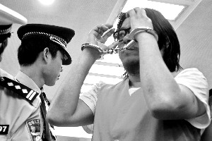 昨日,東城區(qū)法院,在一切程序結(jié)束后,高曉松整整自己的眼鏡框,整個(gè)過程他表現(xiàn)平靜。記者 楊杰 攝